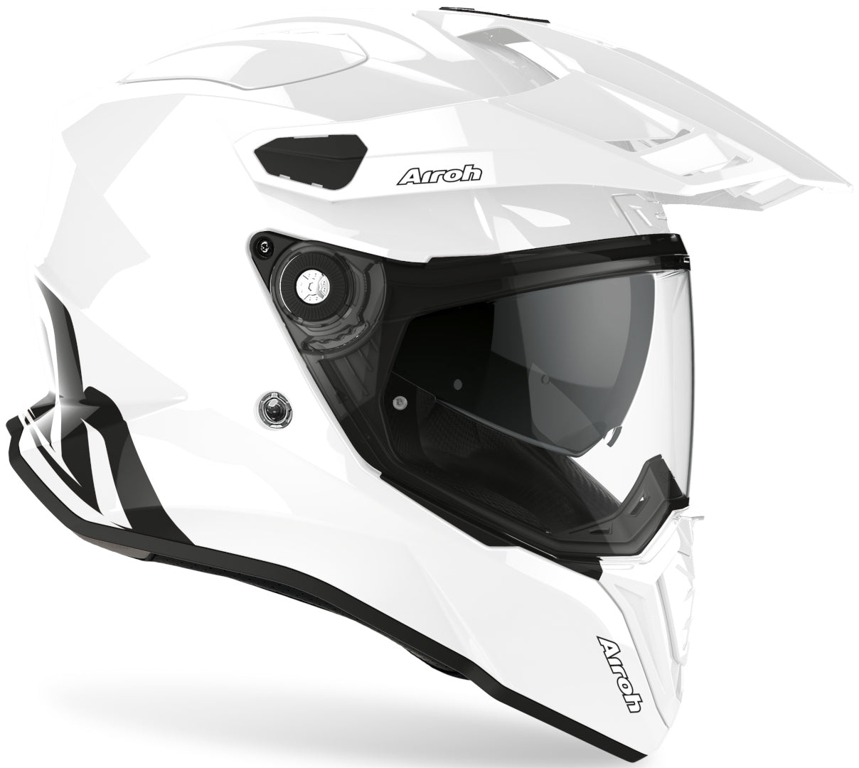 Characterised by an attractive look and advanced technical solutions, Commander is particularly suited for an all-terrain, all-round riding experience. It can be used in two different configurations, i.e. with peak and visor for all-road use, or with visor and no peak on naked bikes or for on-road use. All of the latest Airoh technologies come together in this model without rivals that ensures comfort and total protection, even in the most demanding situations. An extra-wide visor with an integrated Pinlock® lens, a three-point ventilation system, an aerodynamic peak, a retractable sun visor and the opportunity to connect Bluetooth systems are only some of the extraordinary features of Commander.