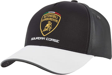 100% Cotton Buckle closure Lamborghini 2020 Adult Squadra Corse Travel Cap Black/Grey/White A stylish, sporty baseball cap with the Lamborghini Squadra Corse logo embroidered to the front. Features a white peak, Squadra Corse inspired detailing under the peak and side,...