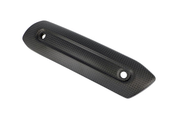 Exhaust pipe heat guard hold carbon texture plain and matt finish; product in Carbon 100% with autoclave process, without modification replaces the original metallic material.