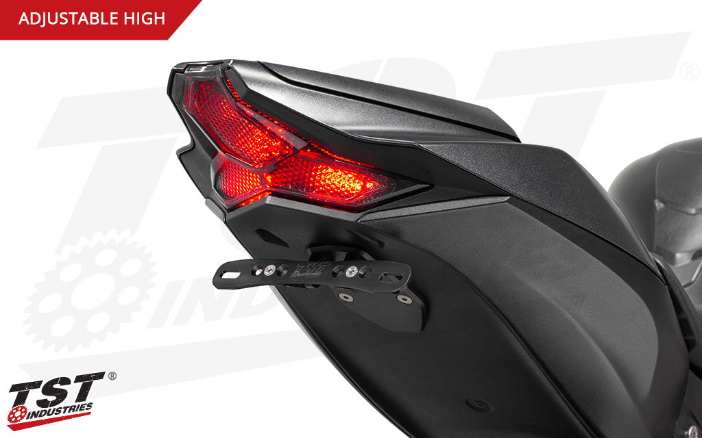 Ditch the ZX-10R stock fender and upgrade to an Elite-1 Fender Eliminator from TST Industries. We've developed three unique license plate brackets to choose from, all of which include a CNC machined ZX-10R Undertail Closeout featuring a durable black anodized finish. You won't find another option that beats the quality or functionality of this customizable fender eliminator system.
