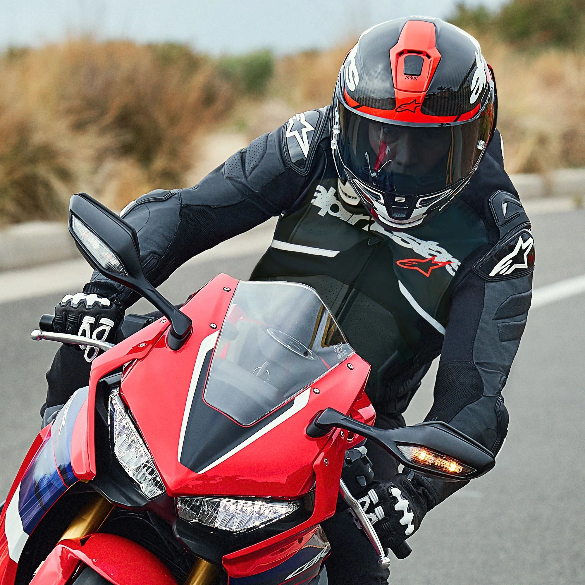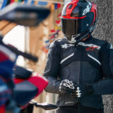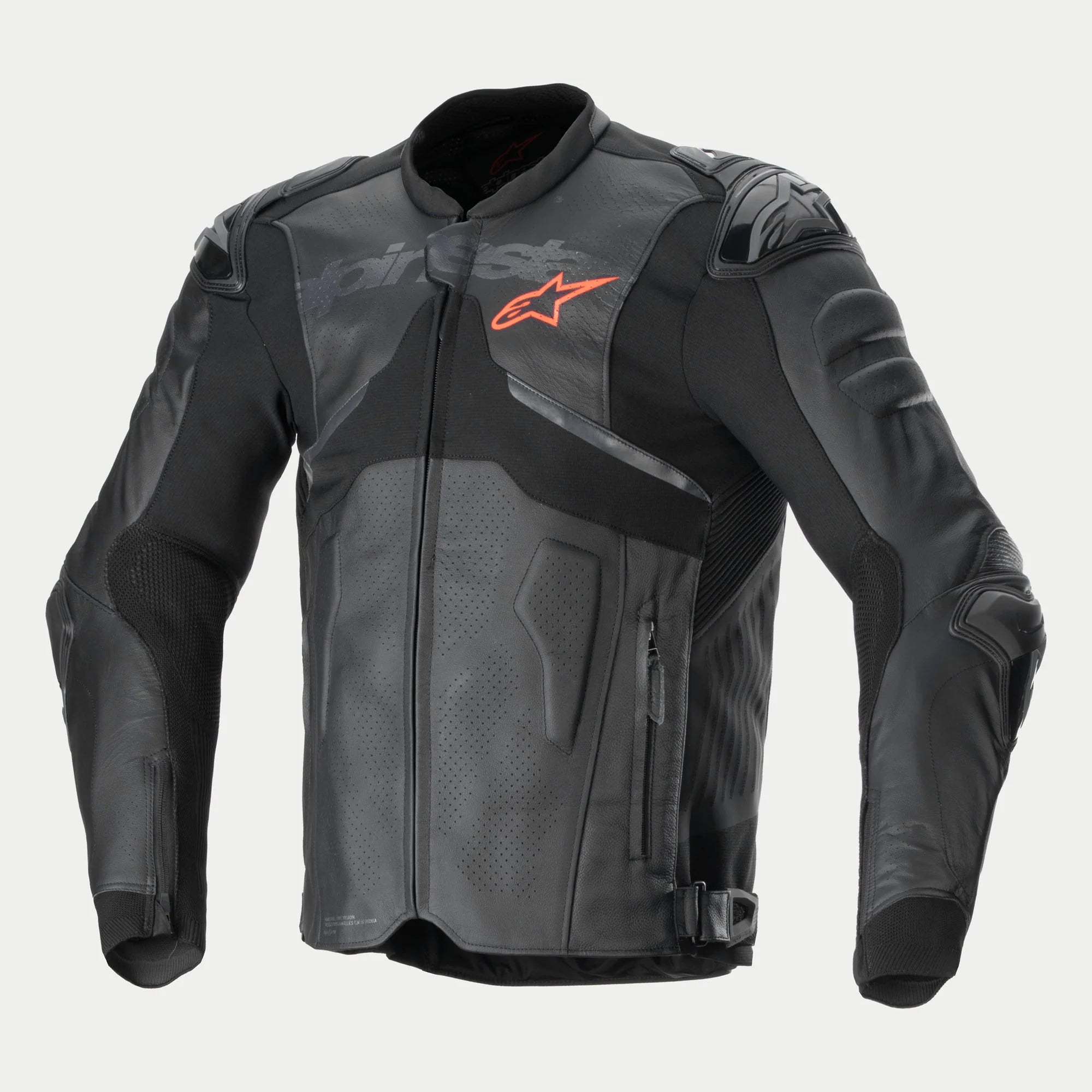 • Alpinestars composite stretch technology, A-CS® Plus, stretch panels on the torso for exceptional breathability, comfort, and freedom of movement, as well as delivering a lighter weight and a lower profile than a traditional leather accordion panel (the A-CS® Plus panels are about 9% lighter than leather panels). Another key advantage of using A-CS® Plus is its superior stretch performance; A-CS® Plus has about 30% elongation, and offers an increase in tear resistance of 300% compared to HRSF (Hyper Resistant Stretch Fiber), and an increase in cut resistance by 600% versus leather.