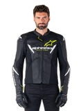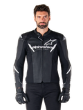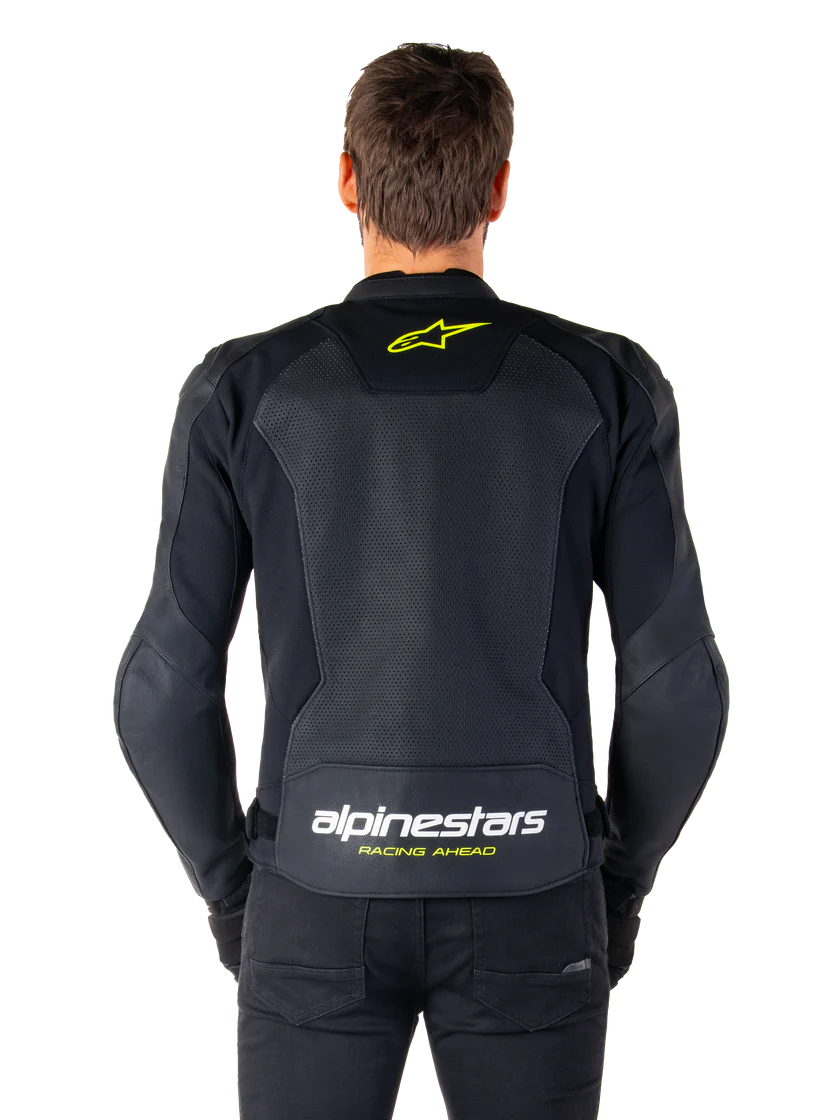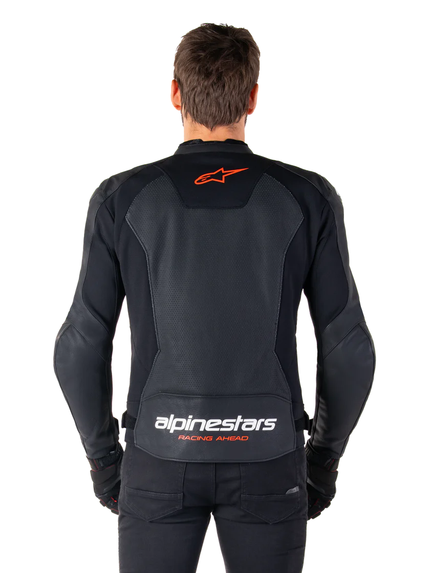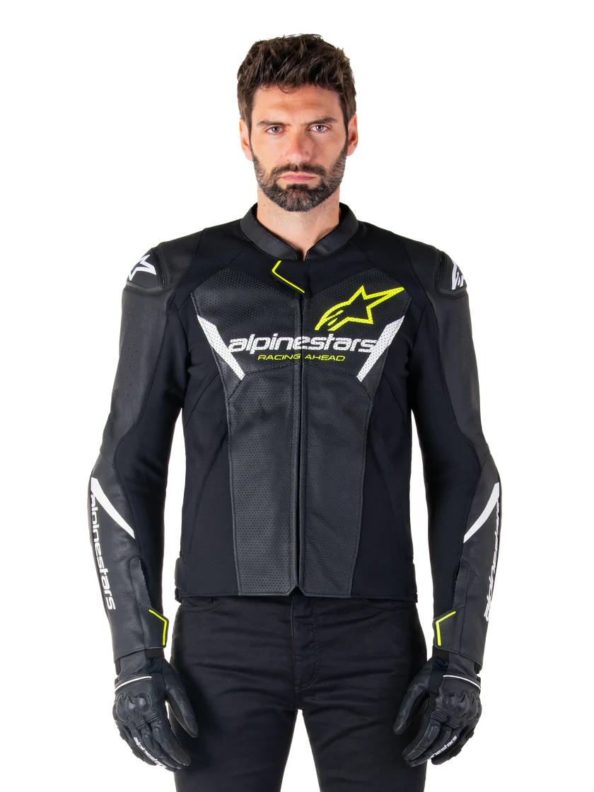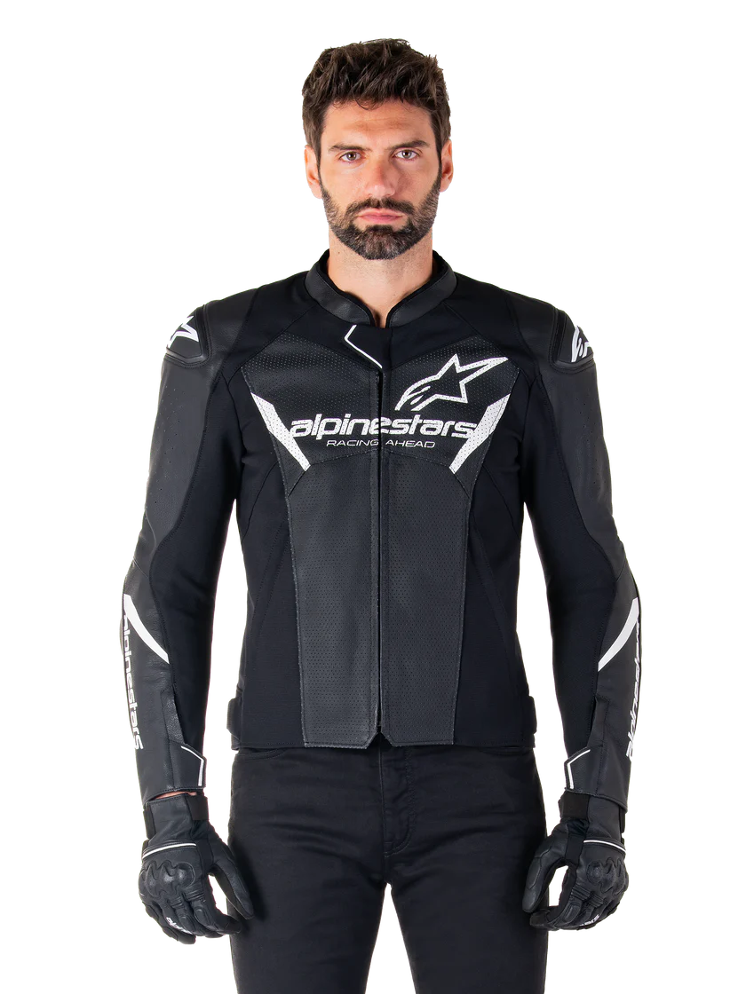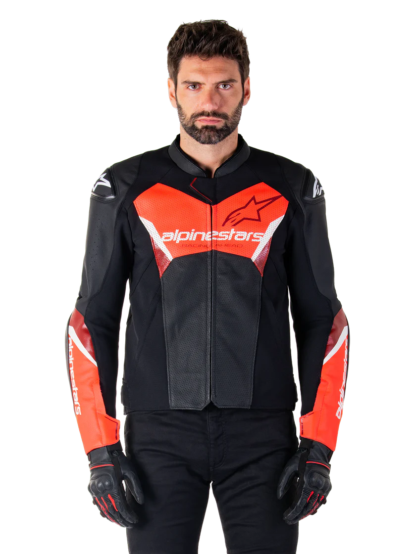 • The Faster V3 Airflow Leather Jacket is equipped with strategically positioned perforations on the arm and bovine perforated leather on the front and back, offering riders high levels of ventilation and cooling airflow.