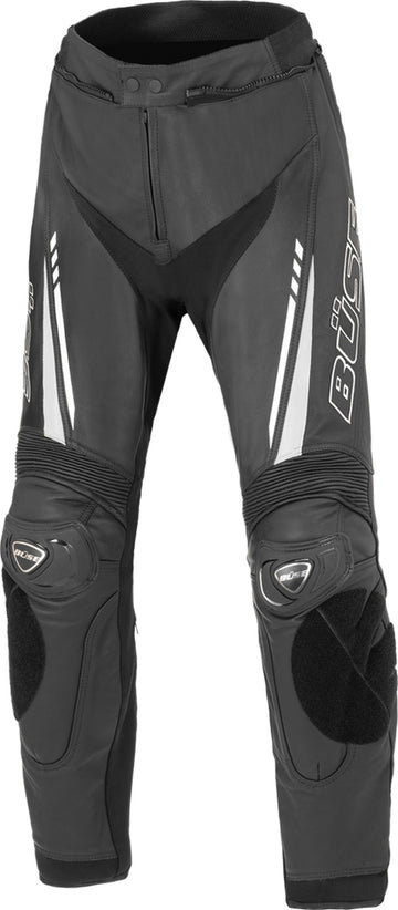 With the Berik Track Motorcycle Pants you are ready for your next race! These leather pants offer safety and wearing comfort and are available in three cool color combinations! Features Full-grain Cow leather super-tense-tex stretch fabric at crotch and back...