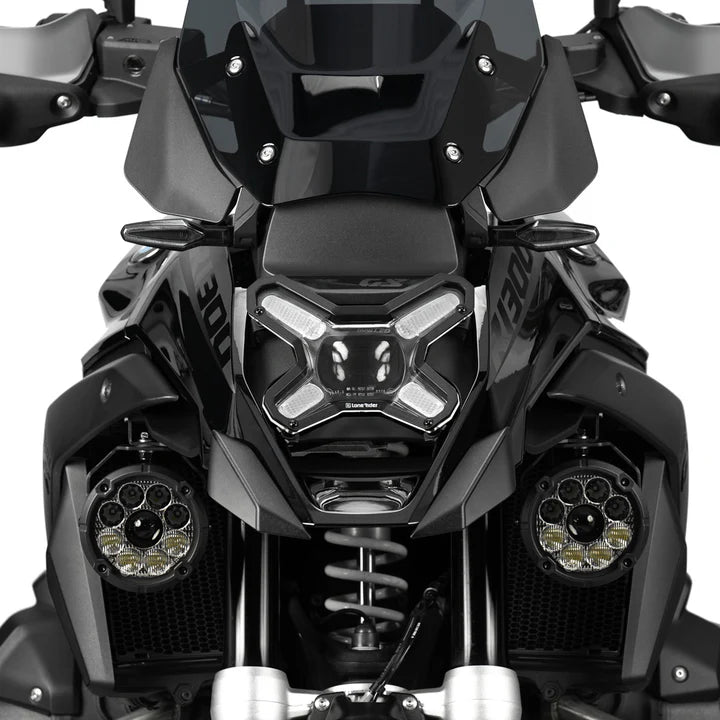 The Lone Rider Headlight Guard Matrix combines premium Makrolon® Polycarbonate with a sleek design for superior durability and clarity. Featuring an amber DRL for enhanced visibility, a clear high-beam section, and quick-release functionality, it ensures maximum protection, easy maintenance, and lasting reliability for all your on- and off-road adventures.