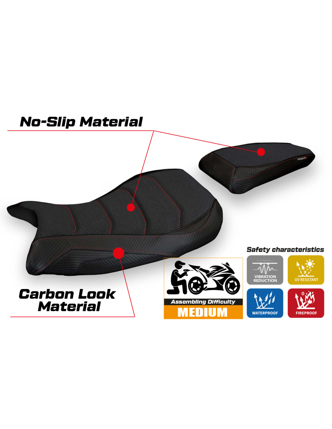 Specifically designed to provide maximum grip, durability, and style, perfect for riders looking for superior control. This seat cover is the ideal choice for those who love sporty riding and want maximum stability in all conditions.