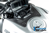 The tank cover for the Ducati Diavel V4 is in the watchful eye of its driver. It runs elegantly to the front and forms a visual transition from the tank to the ignition button and handlebars.