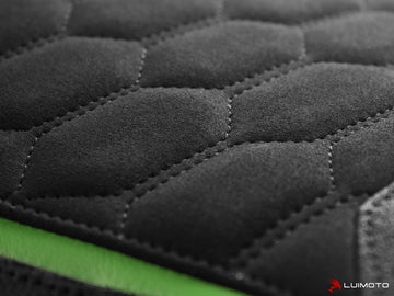 Introducing the Hypersport seat cover for your Kawasaki ZH2! Featuring supreme quality and craftsmanship with style ready to take on any streetfight. The luxurious synthetic suede riding surface features technical hexagon stitching. Tec-grip front and rear pads promote rider stability while accelerating...