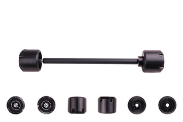 This purchase is for a set of rear axle sliders. They provide indispensable protection for your beautiful expensive swing-arm. The installation is a simple bolt on with the bar going through the axle and one plastic puck on the left...