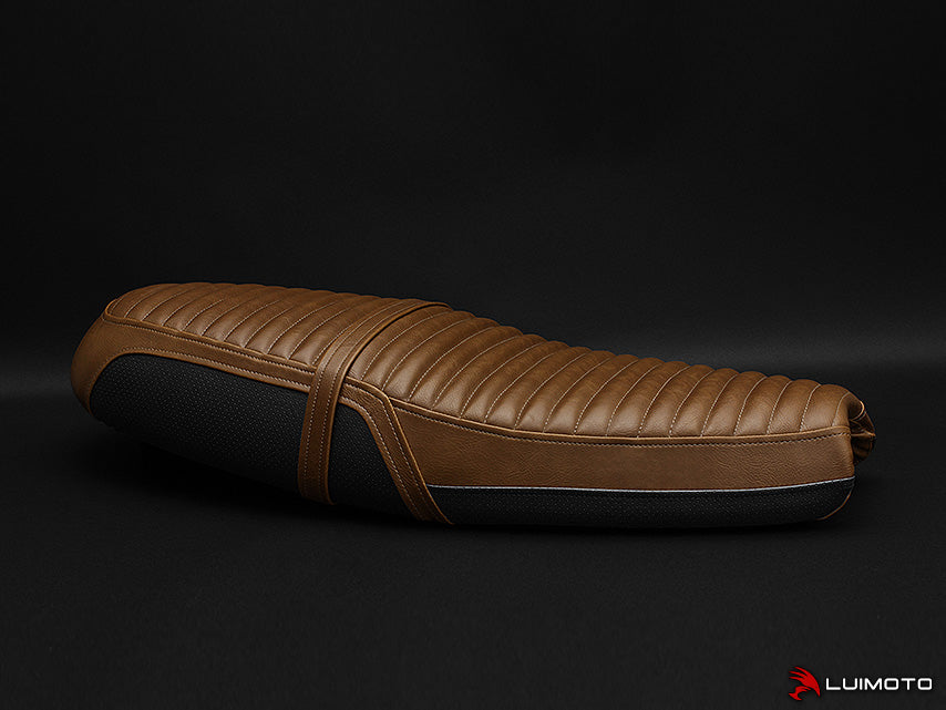 Introducing the Modern Classic seat cover for your 2016 Bonneville. It is made with a vintage style fabric available in brown, dark brown, and black. This leather look material features signs of distress, and is stitched with a classic cafe racer ribbing pattern. The design also integrates our popular perforated material which boldly defines the seat cover. All of these elements come together to complete the look of your Bonneville. Stand out with the finishing touch of Luimoto!