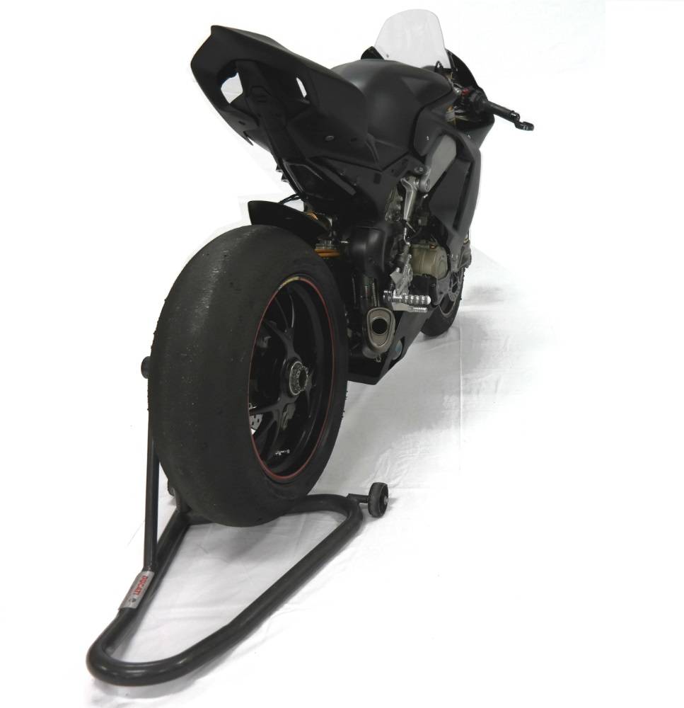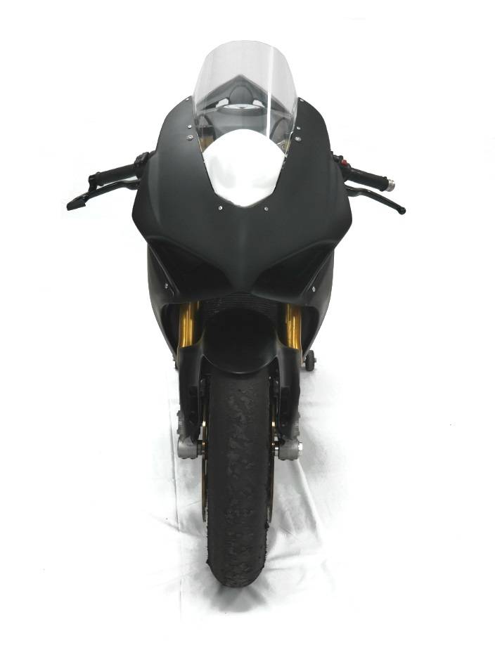 A complete set of bodywork includes an upper fairing, side panels, lower fairing, seat cover and electronics/battery cover. All these parts come fully pre drilled, mounted with quick release fasteners, and sprayed in a black primer. When mounting a race fairing on the V4, a new air intake is needed as the stock intake is no longer usable. This air intake, and several fuel tank cover models are sold separately in our online shop. Request a quote if you want everything completely painted and ready to go.