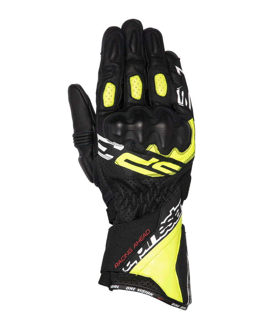 Derived from Alpinestars involvement in top-level racing, the long cuff, SP-3 Gloves are packed with many race-inspired performance features. Accordion panels on the thumb and finger bridge enhance flexibility and control, while the pre-curved construction ensures a natural, ergonomic fit to reduce hand fatigue and improve freedom of movement. Constructed from full goat leather with padded reinforcements, these gloves deliver exceptional durability and abrasion resistance, ensuring lasting comfort and protection for the road.