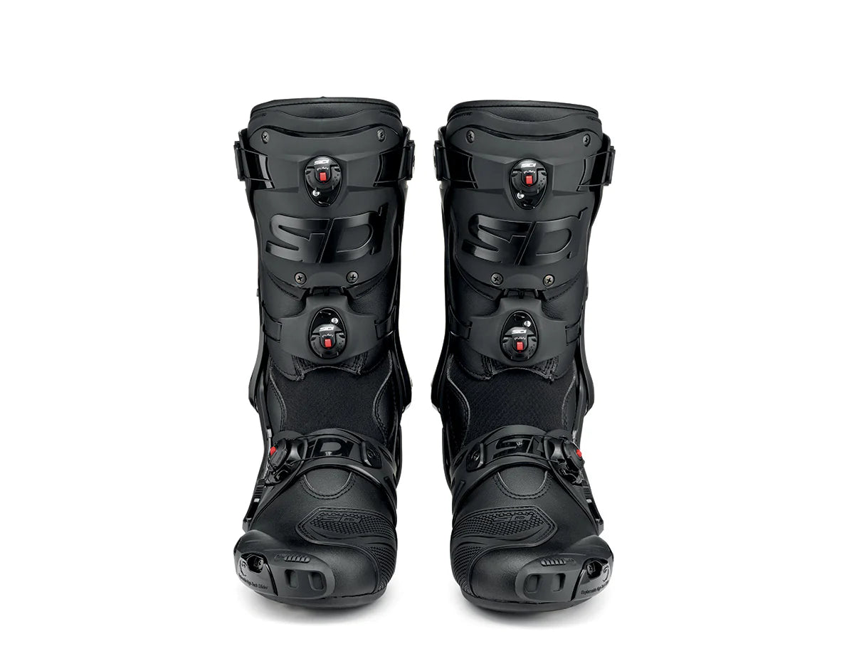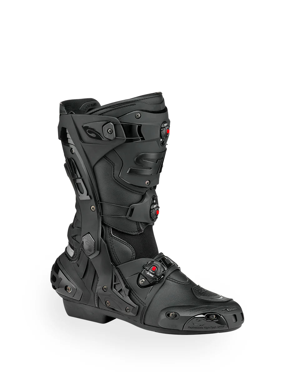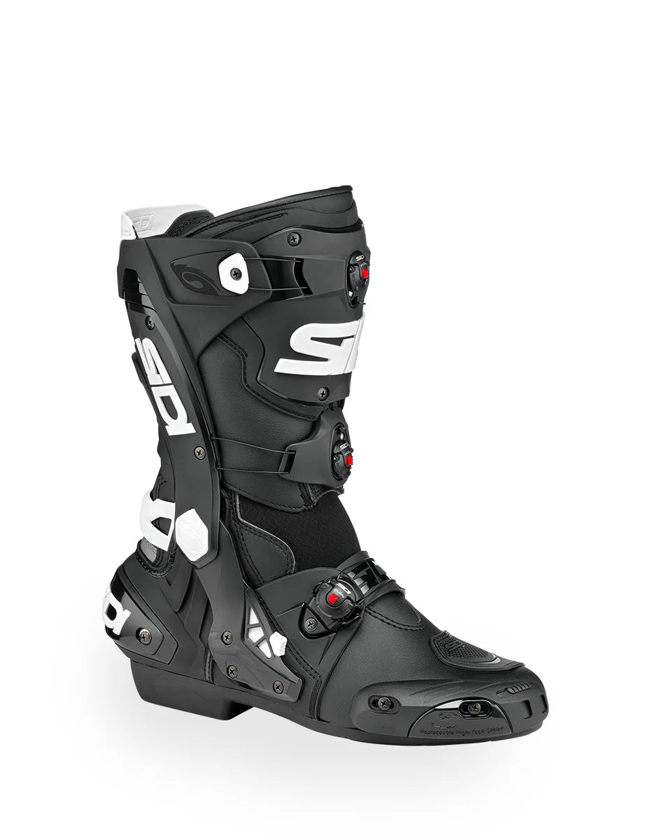 Rex is a boot that makes no compromises when it comes to safety. Every component of this racing boot has been designed to provide maximum protection. Worn by our Pro riders, the Rex incorporates high grade TPU protectors and fiber glass reinforced nylon exoskeleton for invaluable support. The high-density resin dial system is engineered to provide a perfect fit while allowing the boot to be adjusted from either side. Strategically positioned on the outside of the contact areas, it has been integrated into the structure of the boot to provide impact protection for safety. Side slip design for a secure ride.