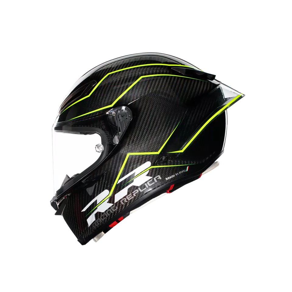 Pista GP RR is an exact replica of the AGV helmet used in races by world champions. It has therefore received the new FIM homologation, which certifies the highest possible level of protection, even against any dangerous twisting of the head. Due to the exclusive AGV Extreme Safety design protocol, Pista GP RR already exceeds the requirements of the strict ECE22.06 homologation.