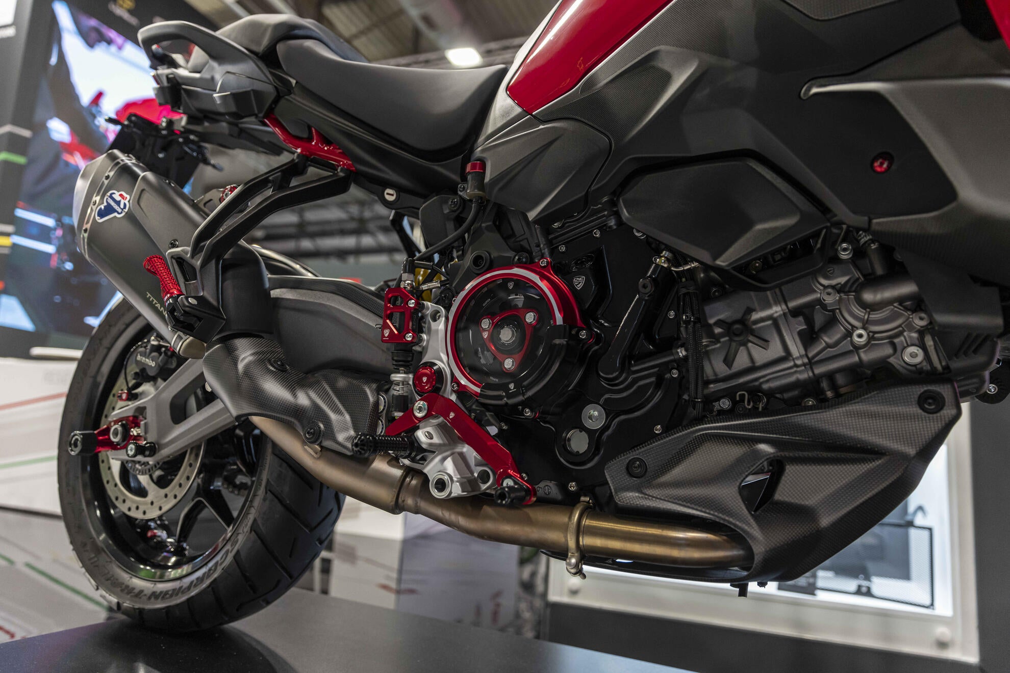 - Unique racing aesthetics: transparency and two-tone finish enhance the look of the Ducati V2 engine